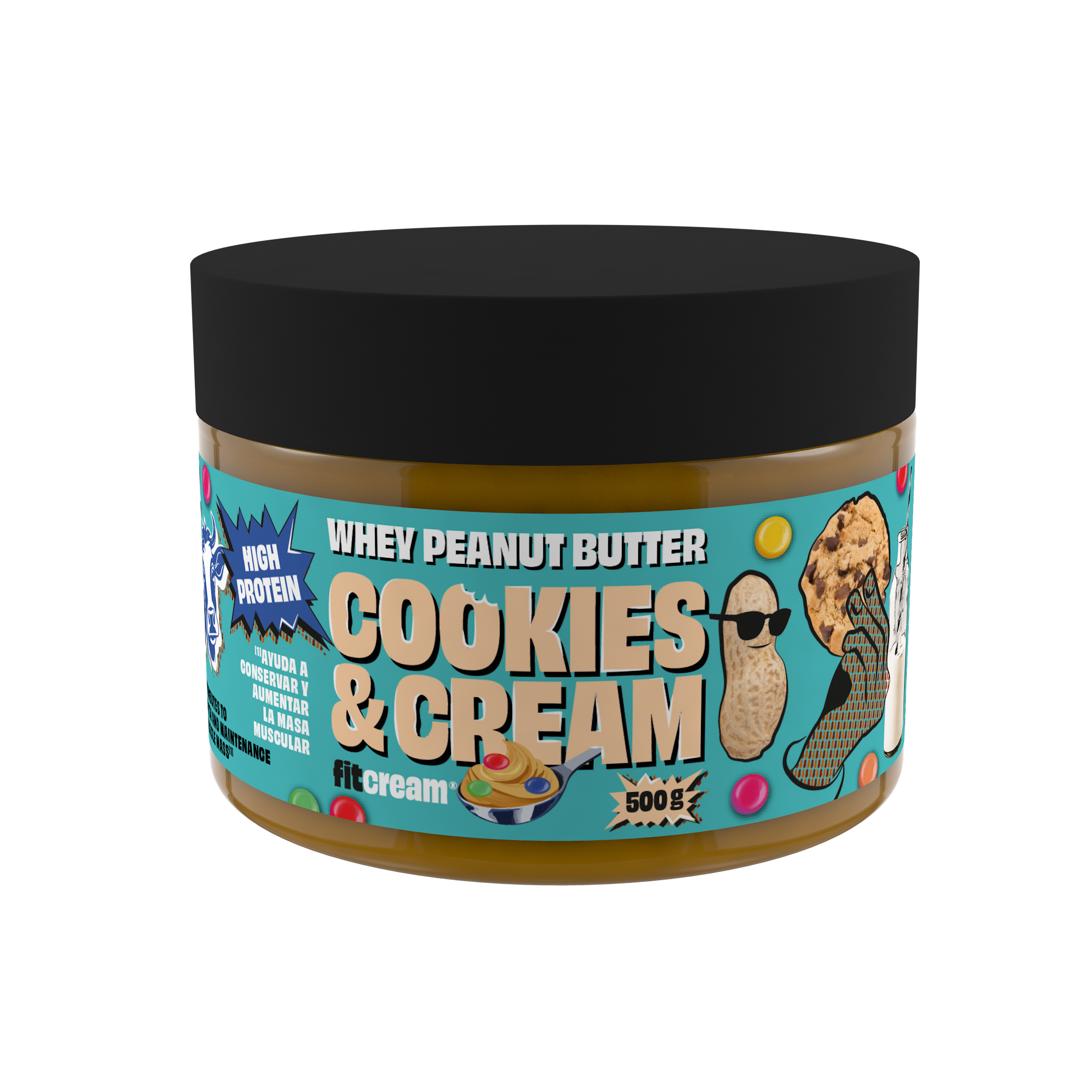 Crema proteica de cacahuete Fitcream Cookies & Dreams, con 67 % de cacahuetes tostados, proteína de suero de leche y trozos reales de galleta con chocolate. Aporta 30 g de proteína por cada 100 g y contiene aceite MCT de coco para una energía limpia y sostenida. Su sabor “cookies & cream” irresistible la convierte en la crema proteica ideal para snacks, postres o después del entrenamiento.